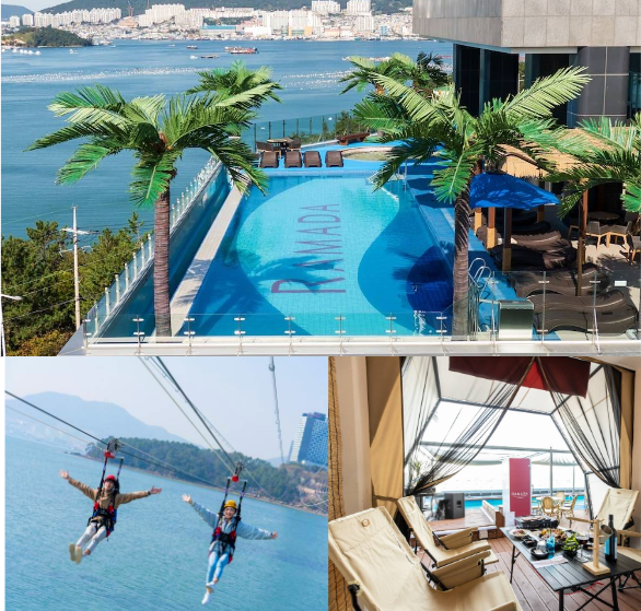 또한, 여수 밤바다를 한눈에 담을 수 있는 라마다 프라자 바이 윈덤 여수에서는 해상 짚트랙을 선보이고 있습니다. 호텔 24층 루프탑에서 출발해 1.2㎞ 구간 해상을 가로질러 돌산도 해변에 도착하는 코스로, 스릴 넘치는 액티비티를 즐기며 아름다운 여수의 자연경관과 번화한 해양관광단지를 함께 감상하며 신혼여행에 색다른 재미를 더합니다.