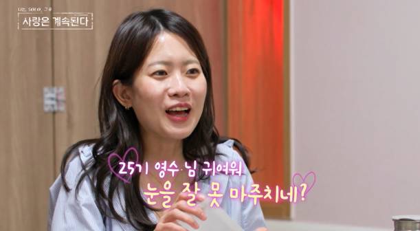 비슷한 시각, 24기 정숙은 24기 영수와 사계 데이트를 한 직후 25기 영수와 사계 데이트를 이어갔다. 식당에 들어간 24기 정숙은 25기 영수에게 "귀엽다. 제 눈을 잘 못 마주치네?"라며 지그시 바라봤다.