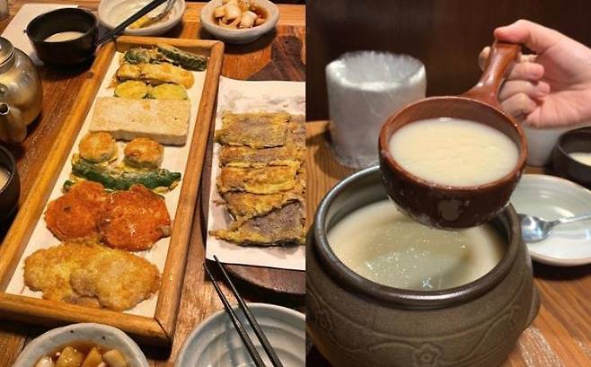 가정집을 개조해서 만들어 특유의 고즈넉한 분위기를 풍기는 압구정 전집. 3층짜리 매장이라 넓고 쾌적하며 테라스 석도 마련되어 있어 요즘 같은 날씨에 제격이다. 정갈하게 세팅되어 있는 젓가락과 잔들은 사소하지만 기분 좋게 만드는 포인트. 묵전의 대표 메뉴는 8가지 노릇한 전으로 구성되어 있는 시골장터 모둠전이다. 신선한 원재료 덕분에 음식에서 잡내가 안 난다는 점은 손님들의 재방문율을 높이고 있다. 도토리묵이나 해물칼국수와 같이 먹으면 기름기를 싹 씻겨주니 꼭 전과 같이 먹는 것을 추천.