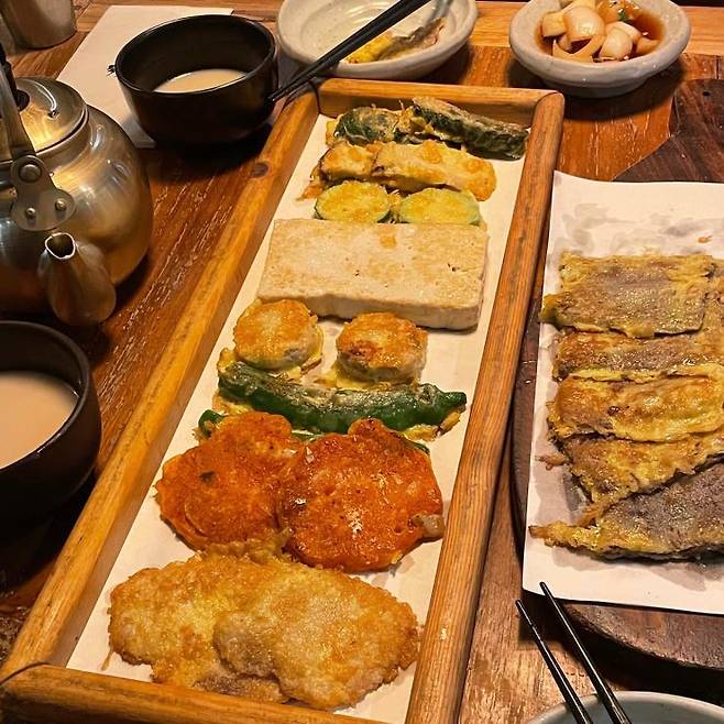 네이버 기준 평점 4.98점을 유지하고 있는 천호역 전집. 우드톤의 인테리어 덕분에 전통적인 분위기와 현대의 모던함까지 느낄 수 있는 매력적인 공간이다. 이곳에 왔다면 모둠전과 살얼음 동동주는 선택이 아닌 필수. 10종의 전으로 구성된 모둠전은 가격 대비 양이 푸짐해 이심전심의 대표 메뉴로 자리 잡고 있다. 부드러운 소고기 육전과 탱글한 새우전을 한 번에 즐길 수 있는 반반전 또한 인기 메뉴이니 참고할 것. 기름 냄새 없는 깔끔한 전과 항아리 가득 담긴 살얼음 동동주의 환상적인 조합을 즐겨보는 건 어떨까.