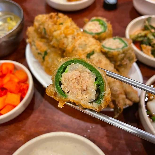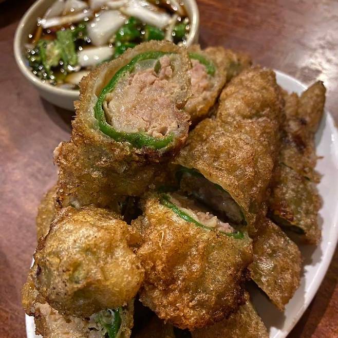 수유에서 자란 사람이라면, 안 간 사람은 있어도 한 번만 간 사람은 없다는 수유맛집. 한 입 먹으면 평생 단골 예약한다는 이곳은, 육수 우린 물로 반죽을 해서 굽기 때문에 풍미 가득한 전을 먹을 수 있다. 다양한 종류의 전을 푸짐하게 먹을 수 있는 모둠전도 맛있지만 이곳은 고추튀김으로 매우 유명하다. 하나 시키면 두 접시가 나오는 데 한 접시 다 먹어갈 때쯤 또 한 접시가 나온다. 먹다가 음식이 식지 않도록 배려해 주시는 사장님의 센스. 카레향 나는 바삭한 튀김옷에 꽉꽉 채워져 있는 다진 고기의 촉촉함 덕분에 그야말로 겉바속촉 고추튀김이다. 여기에 간장 절인 양파와 고추를 올려먹으면 환상. 고추튀김이 수유의 명물인 만큼, 막걸리와의 찰떡궁합을 기대해도 좋다.