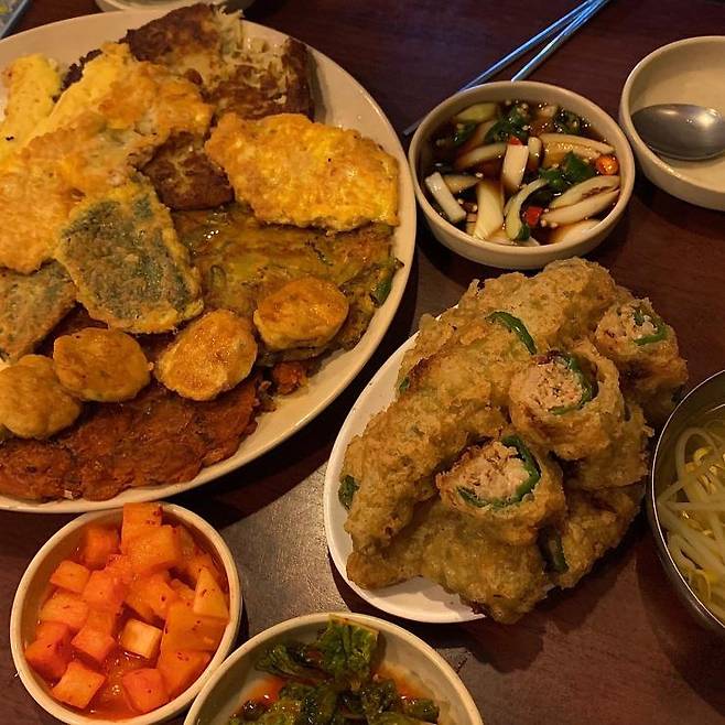 오븐에 구워 바삭하고 담백한 전과 시원한 생맥주를 함께 즐길 수 있는 송리단길 술집. 인테리어가 전반적으로 황토색이라 찜질방에서 먹는 듯한 느낌을 자아낸다. 김치전이나 치즈감자전과 같은 기본적인 전 뿐만 아니라 불고기전, 불닭전, 누텔라옥수수전 등 이색전들과 다양한 사이드 메뉴가 있어 메뉴 고르는 재미가 매우 쏠쏠한 편. 기름기 없는 바삭하고 담백한 전을 여러 개 먹어보고 싶은 사람에게 추천하는 집이다.