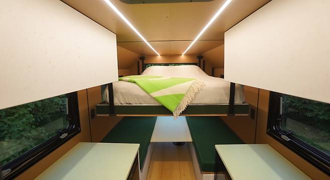 RVEX는 소형 캠퍼밴, 즉 Class B 타입으로 설계됐다. 크기는 기존 캠퍼밴보다 다소 길게 설계된 것으로 추정되며, 실내 공간은 2인용 혹은 소규모 가족을 고려한 구조다. 후면에는 분리형 벤치 시트가 설치돼 침대로 변환 가능하고, 전방에는 화장실과 간이 주방이 배치돼 있다. 후면 해치와 테일게이트를 열면 실내 공간과 외부를 연결할 수 있어, 식사나 휴식, 여가활동뿐만 아니라 카약이나 전기자전거 등 캠핑 장비 적재도 용이하다.