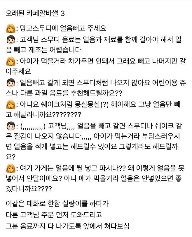 망고스무디에 얼음 빼달라는 손님