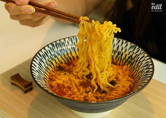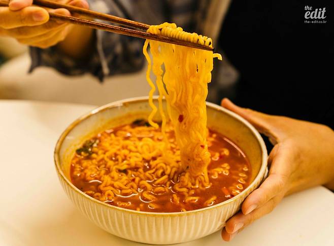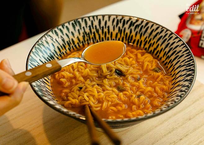 신라면 더레드는 오리지널에 비해 후레이크가 한껏 푸짐해졌다. 양도 2배 이상 많고 고기 건더기의 크기도 커졌다. 자극적이지만 중독성 있는, MSG가 내는 깊은 맛이 느껴진다. 하지만 깊은 맛을 느끼는 건 나중이고 처음 면을 한 입 먹으면 너무 매워서 헉 소리가 난다. 계속 먹다 보면 속이 살살 쓰려온다.