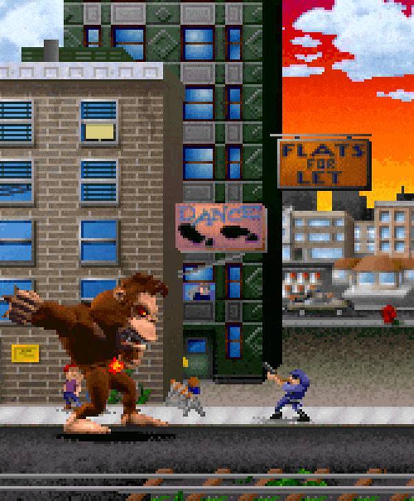 조기자 : 그리고 이 게임의 하일라이트는 컨티뉴 표현에 있습니다. 저 거대한 킹콩에게 잡아먹히는 듯한 느낌을 주는 충격적인 형태.. 어린 시절에 오락실에 '와 이런 게임이 다 있냐..' 하면서 혀를 내두르게 하는 부분이었습니다.