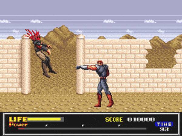 조기자 : 맞습니다. 전형적인 벨트스크롤 게임은 아니지만 이렇다할 횡스크롤 액션이 부족한 시절의 초창기 메가드라이브에 '북두의 권'이라는 전설의 만화 IP를 활용해서 등장! 은근히 히트를 쳤던 작품입니다. 역시나 '스파르탄X' 스타일로 진행되지만 중간에 등장하는 각종 보스와의 전투는 만화 원작 팬들의 감수성을 자극했죠..