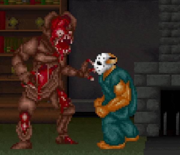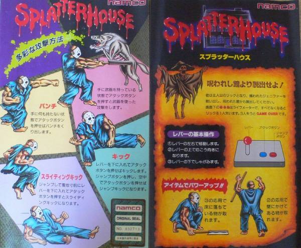 검떠 : '스플래터 하우스'는 1988년도에 남코에서 제작한 오락실용 액션게임이 원작입니다. 당시로서는 흔치않은 호러 장르로 매니아들의 사랑을 받아서 이후 후속편까지 등장할 정도로 인기를 누렸는데요.. 후속편은 아케이드가 아닌 메가드라이브 전용이라는 점이 옥의 티라면 티죠(덕분에 후속작들은 공포 컨셉보다는 액션성에 촛점을 맞춘)