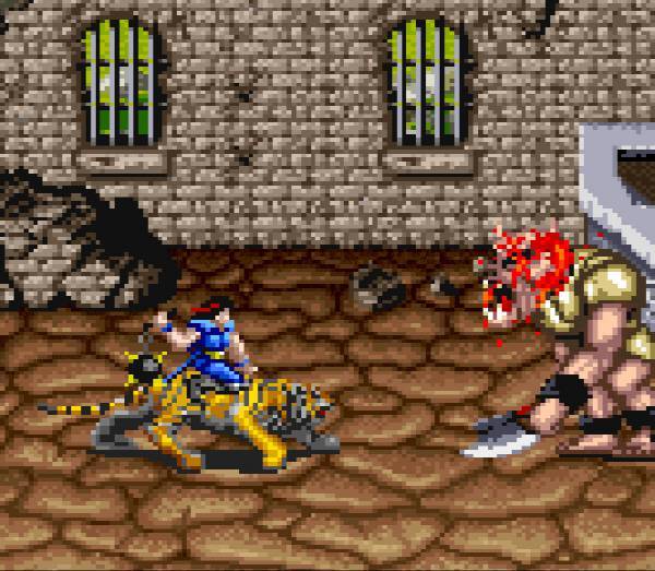 조기자 : 저도 이 게임 어린 시절에 보고 충격을... 적들을 공격하면 아주 피 떡이 되더라고요. 죽을 때 목이 잘리는 연출 등(아니 왜 주먹으로 치는데 목이 잘리냐구요) 심지어 주인공이 호랑이로 탈 것을 변경하게 되면 기술 자체가 적의 목을 빙빙 감아서 뜯어버리는 충격적인 연출도 나옵니다.
