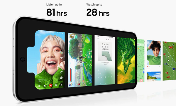 배터리 용량은 4,700mAh로 갤럭시 S24+보다는 줄었으며 고속 충전 속도도 최대 25W로 갤럭시 S24와 동일하게 설계했다. 친환경 정책 차원에서 재활용 플라스틱·알루미늄·글라스·희토류 등 다양한 재활용 소재를 제품 일부 내·외부 부품에 사용했다. 제품 패키지 박스에도 100% 재활용 종이가 적용됐다.