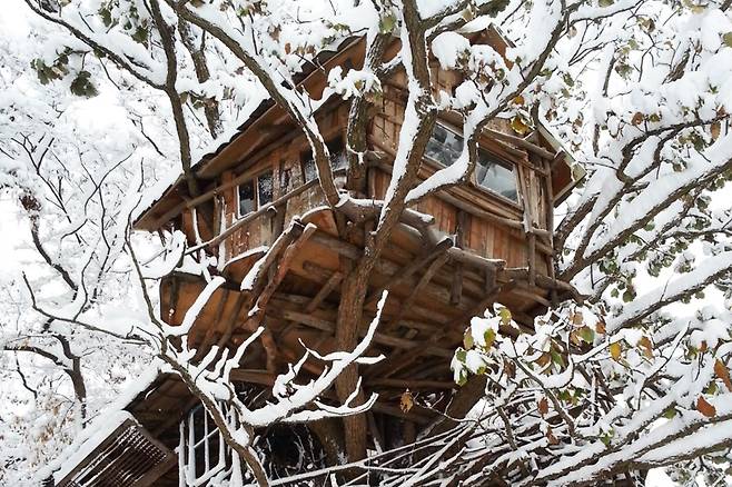 겨울이 되면 새하얀 풍경 속 트리하우스를 만날 수 있는데요. 트리하우스에서 바라보는 자연 풍경은 더 인상적이죠.