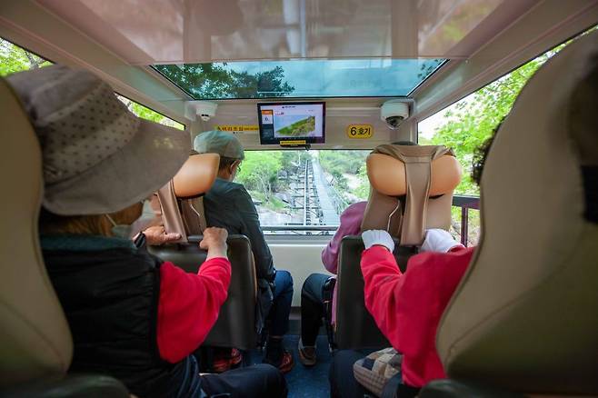 특히 눈이 내리기 직전이나 직후에 방문하면 공기가 아주 맑아져 먼 능선까지 또렷하게 보이는데, 이때 창문 너머로 펼쳐지는 장관은 말 그대로 압도적입니다. 모노레일이 한 칸 한 칸 올라갈 때마다 시야가 새롭게 열리며, 바위와 숲이 공존하는 대봉산의 지형이 겨울옷을 입고 전혀 다른 산처럼 보이죠.