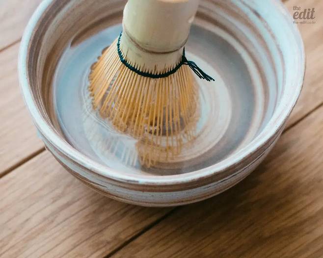 말차는 원래 물과 우유 등에 잘 섞이지 않는다. 80도 정도의 따뜻한 물에 체 친 말차 가루를 넣고 차선이라 불리는 갈고리로 격불해야 하는 이유다. ‘격불’이라는 말만 들어도 팔이 아프다. 격렬하게 휘저어 열불나는 모습이 상상되니까. 격불할 때 쓰는 대나무 차선은 물로 헹궈 자연 바람에 말려 건조한 곳에서 보관해야 한다. 사용도 보관도 까다롭다. 격불 자체가 마음 수련의 하나라고 하는데, 내겐 차선 보관이 수련이었다.