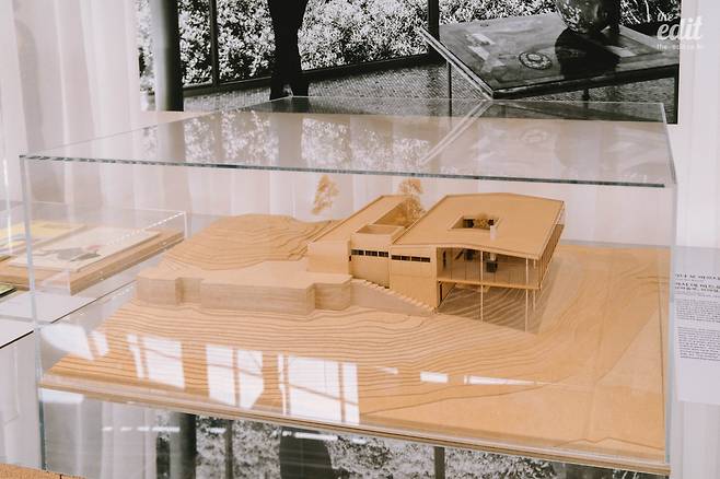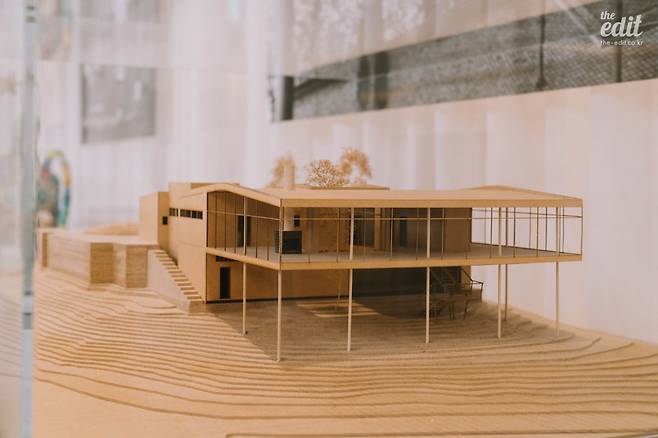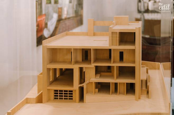 전시장에 입장할 때 내가 했던 말을 혹시 기억할까? '하늘거리는 커튼 사이로 들어가'라는 표현처럼, 이 비트라 디자인 뮤지엄과의 협업 전시 파트는 거대한 하얀색 커튼으로 전시관별 세부 구분을 해 놓았다. 반대편이 살짝 보이는 반투명함 덕분에 전시장은 답답하지 않으면서 공간 구분이 된다. 안티빌라에서 아이디어를 얻은 것이다. 독일의 브란들후버가 만든 안티빌라는 기존의 건물과는 큰 차이가 있는데, 하중의 영향을 받지 않는 벽은 모두 제거하고, 난방에 유리한 소재로 만든 커튼으로 공간을 구분했다는 것. 외관에서는 자연과 어우러지는 투박함을 느낄 수 있고, 내부는 우아하다. 첫 번째 섹션에서는 그랜비 포 스트리트 같은 도시 재생 프로젝트뿐만 아니라 새로운 방식으로 디자인된 공간을 살펴볼 수 있다.