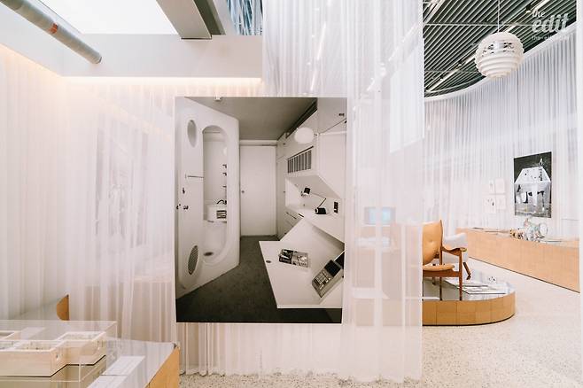 자, 이제 하늘거리는 커튼 사이로 들어가, 전시의 두 번째 파트를 살펴보자. 비트라 디자인 뮤지엄이 소개하는, 20여개의 혁신적 인테리어를 통해 진화한 지난 100년간의 주거 문화다.