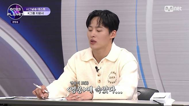이 가운데 시그널송 테스트가 이어졌다. K그룹 김규빈이 받는 테스트방에는 백구영 마스터가 자리하고 있었다. 앞서 백구영 마스터는 김규빈에게 "'영웅'만 몇 년 했냐"고 이야기했던 바.