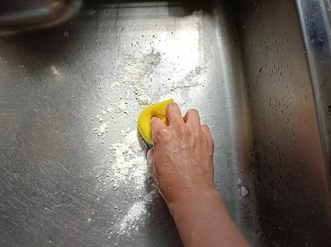 3️⃣ 부드러운 스펀지로 문질러 닦아내기