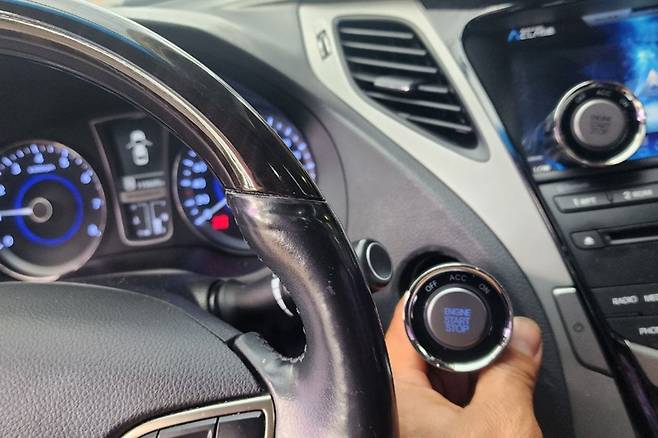 시동 버튼을 한 번 누르면 흔히 말하는 ‘반 시동’ 또는 ACC 모드가 켜진다. 이 상태에선 내비게이션, 라디오, 전기장치가 작동하나 엔진을 켜지지 않아 연료 소비가 없다. 10초 이상 길 게 누를 경우 완전 시동으로 엔진이 가동돼 차량 주행 준비가 완료된다.