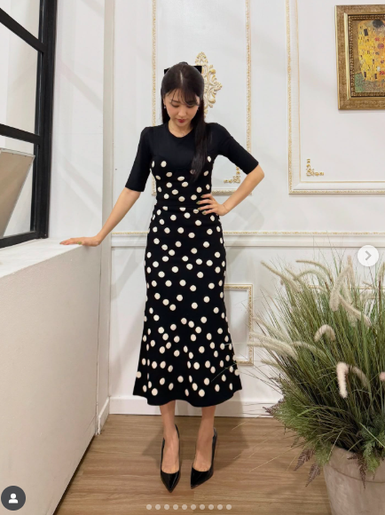 사진 속 박하선은 반팔 티에 도트 패턴의 롱원피스를 매치해 우아하면서 청순한 분위기를 자아냈다.