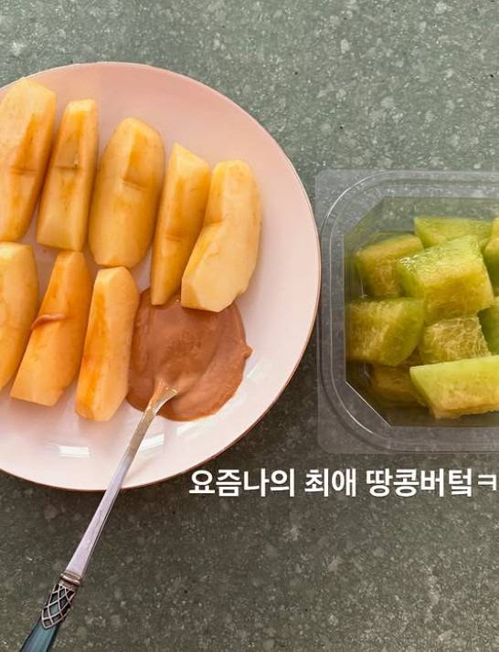 이후 그의 다이어트 비결에 관심이 모였는데요. 자신의 채널을 통해 나나는 운동에 주력하는 모습과 식단 사진까지 공유했습니다. 최근에는 '땅콩버터'에 빠졌다며 사과와 곁들인 땅콩버터 사진을 게재했어요.