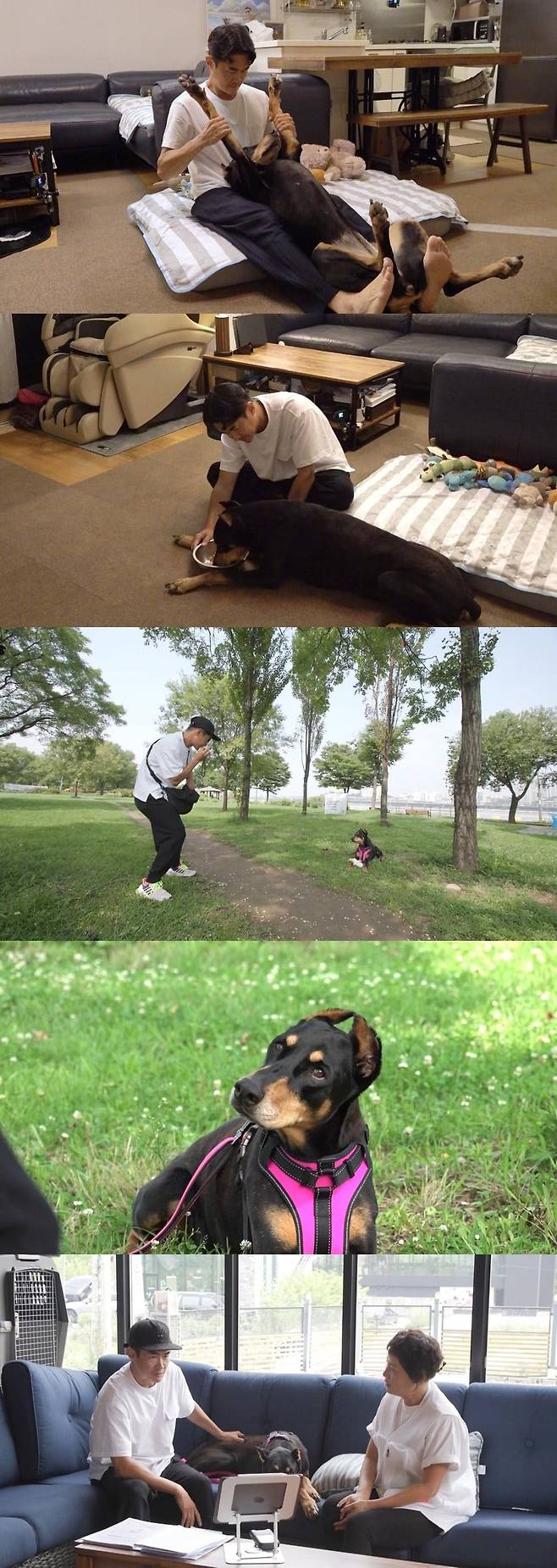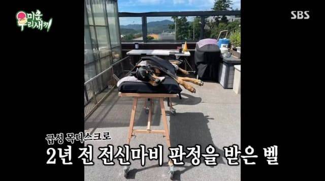 벨은 2년 전 급성 목 디스크로 인해 전신마비 판정을 받았고, 배정남은 수술이 불가능한 상황에서도 벨을 포기하지 않고 간호했습니다. 그는 벨이 다시 일어설 수 있도록 보조기를 사용해 재활훈련을 시작했고 1년 7개월 동안 끊임없이 회복을 위해 노력했습니다.