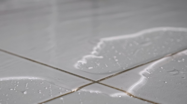 이때 가장 빠른 방법은 스퀴지나 물기 제거용 고무밀대로 물을 한 번 쓸어내리는 것입니다.