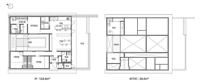 200평 가까이 되는 넓은 대지 위로, 균형 잡힌 단층주택이 떠올랐다.