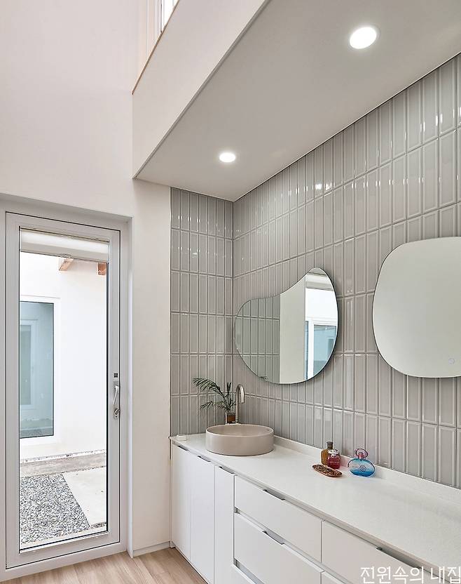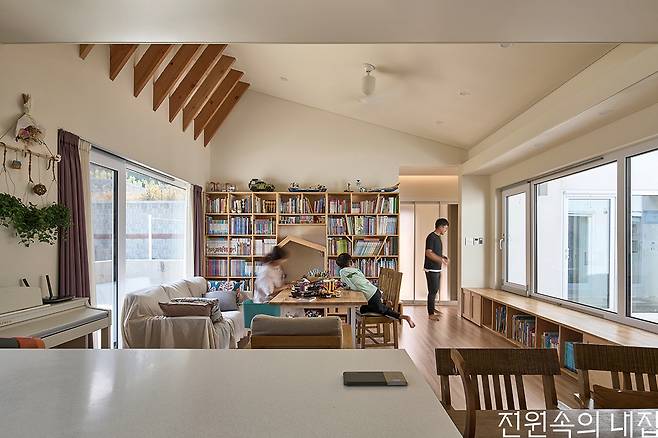 단독주택의 설계는 성공적 집 짓기를 전술 회의처럼 논하는 것이라고 최준석 소장은 설명했다. 건축주와 함께 다양한 조건들과 이슈를 절충해 나가고, 꿈과 현실 사이의 간극을 줄이며 중요한 것들을 가려내는 과정을 거듭하며 나오는 하나의 솔루션이 집이 되는 것이다. 땅과 건축의 조화로 도출된 답인 단층주택은 그 자체로 가족을 위한 안식처로 존재감을 뽐내고 있다.