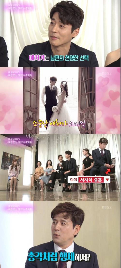2017년 방송된 KBS 2TV '연예가중계'에서 드라마 '이름없는 여자' 배종옥, 오지은, 박윤재, 서지석, 최윤소, 변우민과의 인터뷰를 진행했습니다. 서지석은 "애처가라는 말이 있다"는 말에 "애처가로 사는 게 현명한 남자더라"고 말했습니다. 이에 변우민은 스태프를 향해 서지석을 손가락을 가리키며 "결혼했어?"라고 물었습니다.