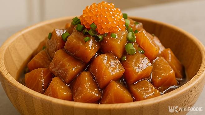 조리법은 단순하지만 맛의 조화는 뛰어나다. 단맛, 짠맛, 매콤한 맛이 고르게 어우러지며, 날치알의 톡톡 튀는 식감은 부드러운 연어와 대비를 이뤄 씹는 재미를 준다. 기름진 느낌이나 비린내도 거의 없다. 생연어만 있다면 재료 손질 없이도 바로 만들 수 있어 활용도도 높다.