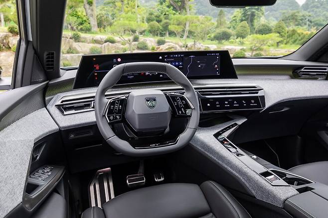 실내는 화려함과 심플함이 공존한다. 운전석과 조수석을 명확하게 구분되어 있으며, 센터페시아에 자리 잡은 기어 스위치, 센터 콘솔박스 부분에 자리 잡은 드라이브 모드 스위치 등은 모두 운전자 중심이다. 워낙에 보수적이기로 유명한 회사지만 3008 스마트 하이브리드에서는 물리 버튼과 디지털 버튼, 터치 패널이 적재적소에 배치되어 있다. GT에는 두 개로 나눠진 21인치 파노라믹 커브드 디스플레이가 적용되는데 글자나 버튼이 큼직큼직해(투박한 느낌은 전혀 없다) 시인성도 좋고 만지는 맛도 살아 있다. 가장 마음에 들었던 부분은 대시 보드와 센터 터널의 밝은 직물 소재의 마감재. 화려하게 꾸미는 대신 실용성을 추구하는 푸조의 본질이 잘 나타난 부분이다.