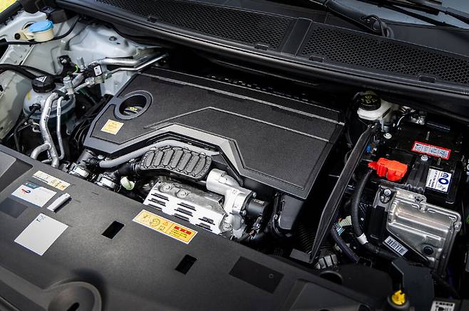 푸조 3008 스마트 하이브리드의 심장은 136마력을 내는1.2ℓ 직렬 3기통 터보 엔진과 15.6Kw를 내는 모터가 최종 출력 146마력을 만들어 낸다. 300마력이 국민 마력이라 불리는 시대에 146마력을 허방할 수 있지만 푸조의 엔진 세팅은 실제 가용 구간에 초점을 둔다. 여기에 무게를 줄인 6단 듀얼 클러치(e-DCS6)가 맞물려 최적의 효율을 추구하며 공차 중량은 약 1.6톤 정도 밖에 되지 않는다. 한 가지 아쉬운 점은 푸조가 본격 하이브리드 모델을 내 놓으면서 계기판의 rpm 게이지가 사라졌다는 점이다. 지름이 작은 스티어링, 운전 중 운전자의 몸을 지탱해 주는 어댑티브 볼스터는 운전 재미를 추구하는 푸조다운 발상이다.