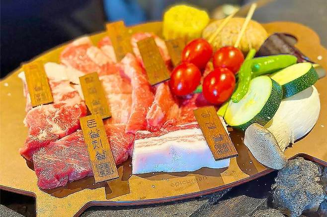 육일점은 일반 백돼지보다 훨씬 쫄깃하고 고소한 식감을 가진 얼룩 돼지를 사용해요. 역시 오마카세 답게 그날그날 얼룩 돼지의 부위를 직접 선별한 뒤 참숯에 구워 훈연향을 살려 제공하고 있어요.