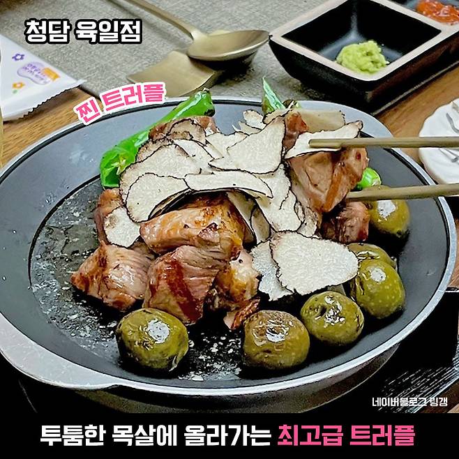 게다가 블랙 트러플, 제철 우니, 염장 다시마 등 고급 식재료로 불리는 재료로 만든 곁들임 메뉴도 육일점의 시그니처에요. 다양한 반찬과 함께 먹는 최고급 돼지고기는 가히 최고최고♥