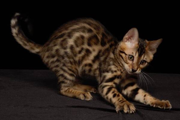 뱅갈 고양이는 단연 돋보이는 외모로 유명합니다. 짙은 반점이나 마블 무늬가 전신에 퍼져 있어 마치 작은 표범을 보는 듯한 인상을 주는데요. 체형은 길고 근육질이며, 허리와 다리가 길어 운동에 최적화된 몸매를 가지고 있습니다.