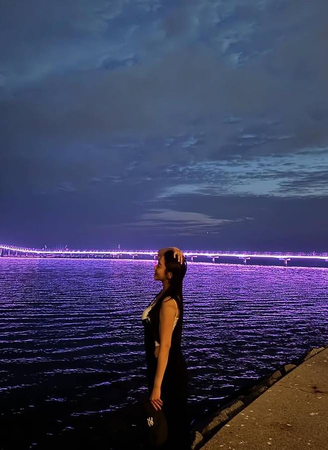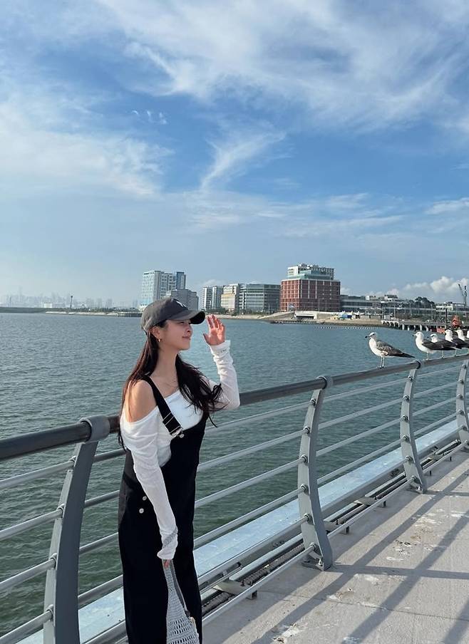 배우 정유미가 바닷가에서 오프숄더 톱과 멜빵 바지 산책룩으로 내추럴한 미모를 물씬 풍겼다.