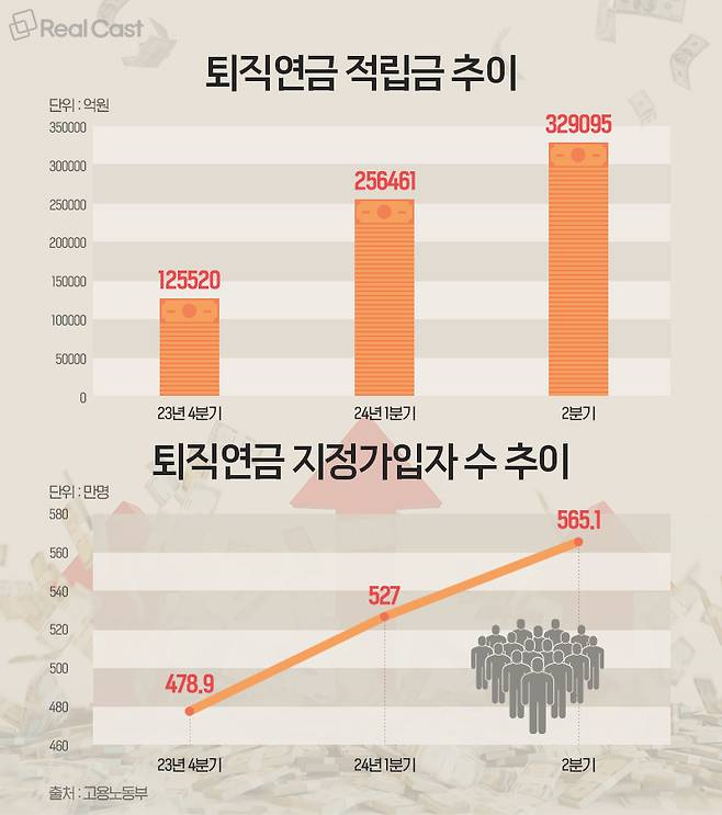 2024년 2분기 퇴직연금 디폴트옵션(사전지정운용방법) 주요 현황 공시에 따르면 2분기 말 기준으로 적립금은 32조 9095억 원으로 확인됐습니다. 이는 지난해 말(12조 5520억 원) 대비 2.62배 늘어난 수치입니다.