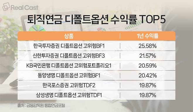 이외에도 ‘동양생명 디폴트옵션 고위험BF1’(수익률 20.42%), ‘한국포스증권 고위험TDF2’(수익률 19.87%), ‘삼성생명 디폴트옵션 고위험TDF1’(수익률 19.87%)’가 뒤를 이었습니다.