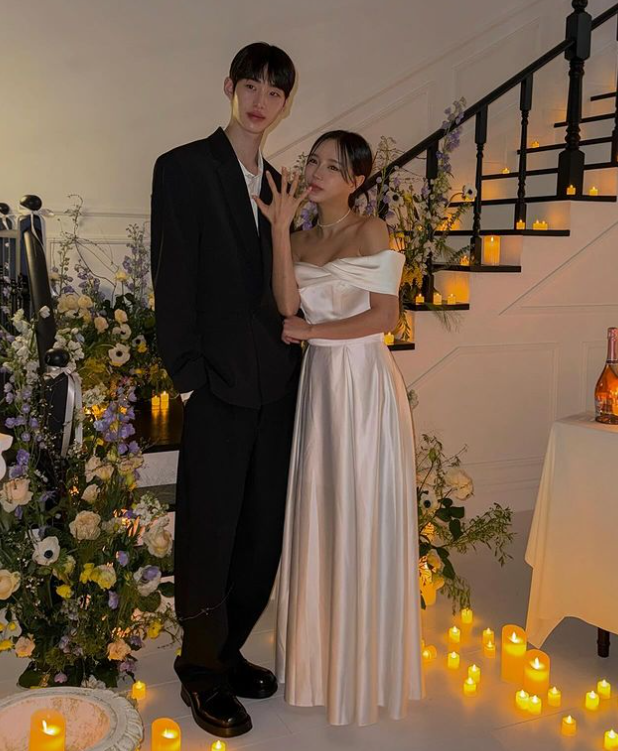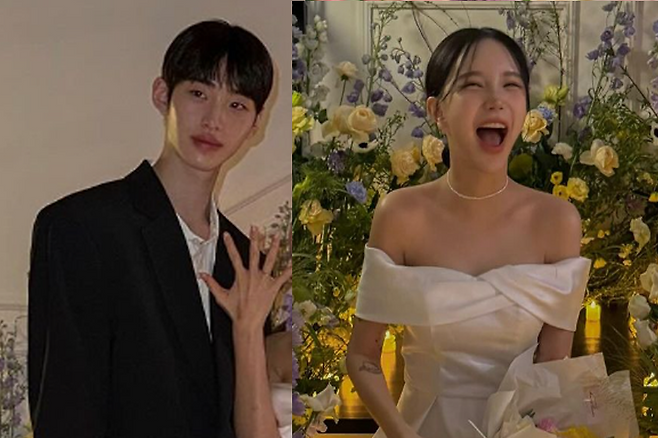 한아름송이(30)는 6살연하인 모델 이민석(24)과 결혼을 발표하며 웨딩사진을 공개했다.