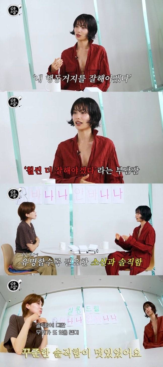 나나는 외모도, 스타일도, 생각도 모두 ‘솔직하게’ 멋진 사람이라는 걸 다시 한 번 느낄 수 있었던 살롱드립2 방송이었어요✨ 단순히 예쁜 스타가 아니라 진심으로 멋진 언니라는 게 더 와닿았고요~ 요즘 연예인들 중에서 이렇게 꾸밈없이 말하는 사람 드문데, 그래서 더 소중한 캐릭터 같아요💖