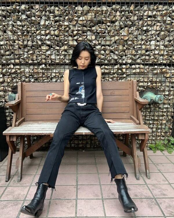 원조 패셔니스타 배우 채정안의 시원한 올블랙 패션이 화제다. 그녀는 힙한 프린팅이 돋보이는 블랙 슬리브리스에 블랙 팬츠를 매치해 록시크 무드를 풍겼다. 여기에 블랙 워커로 룩에 밸런스를 맞췄으며 볼드한 이어링과 반지로 미니멀한 포인트를 더했다. 여름 올블랙 패션을 시도하고 싶다면, 채정안의 올블랙 패션을 따라 해보는 건 어떨지?