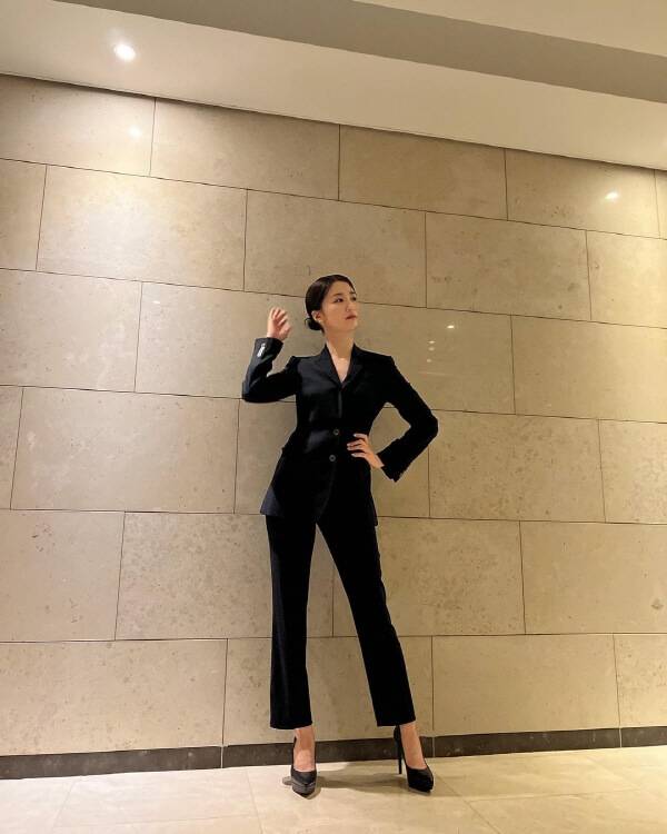 올블랙 패션을 가장 쉽게 소화하는 방법? 바로 슈트 셋업으로 착용하는 것이다. 박하선은 몸매 라인이 드러나는 슬림핏 블랙 슈트 셋업으로 페미닌한 분위기를 자아낸 모습이다. 여기에 고급스러운 로우 번 헤어스타일과 아찔한 킬힐로 카리스마를 드러냈다. 하객룩으로도 손색없는 올블랙 슈트 셋업 룩을 참고해보자.