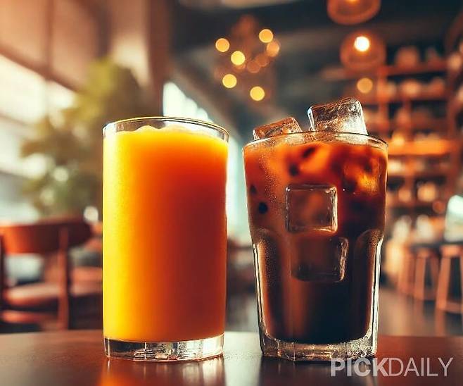 오렌지주스나 레몬에이드처럼 산도가 높은 과일주스는 커피와 궁합이 좋지 않습니다.