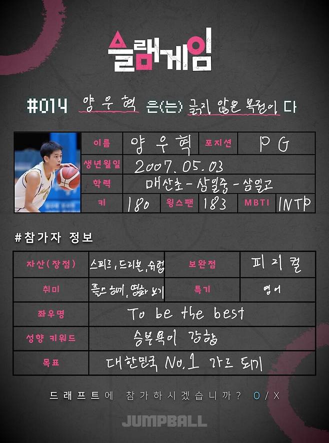 [25슬램게임: 드래프트에 참가하시겠습니까?] (014) ‘삼일 유키’ 삼일고 양우혁 “대한민국 최고의 가드가 될래요!”