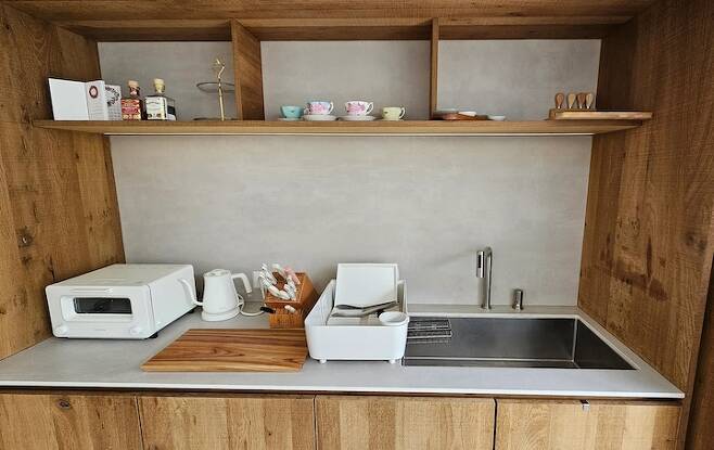 2층에도 미니 주방이 있어서 딸아이가 목마를 때 1층까지 내려가지 않아도 되고 간단한 간식 거리도 보관할 수 있어서 편리하답니다.