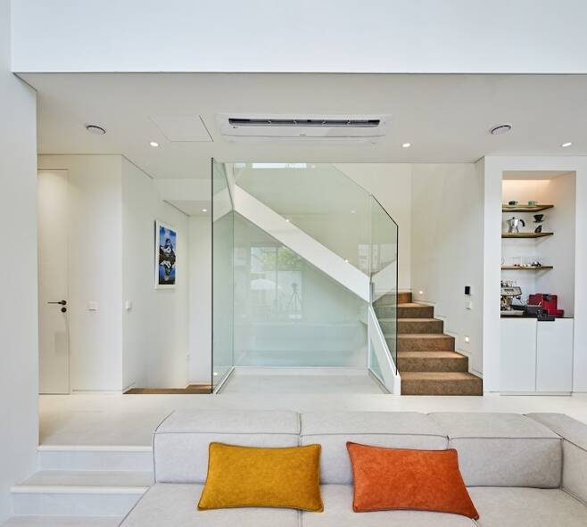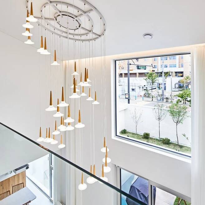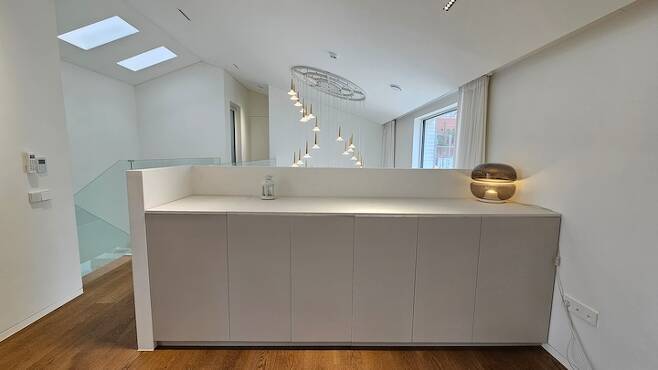 아직 아이가 어려 지금은 비워두었으나 유리 난간 사이는 실내 정원을 꾸밀 예정이에요.