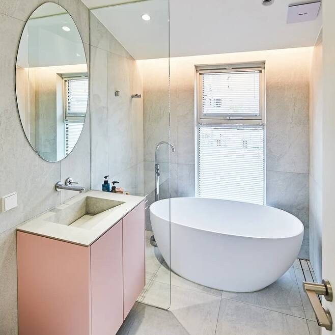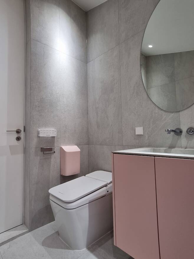 이층은 주로 사춘기 딸아이가 사용하는 공간 들이라 욕실도 핑크핑크로 사랑스럽게 꾸며봤어요. 핑크를 좋아할 나이는 지났지만 엄마 마음 속에는 여전히 아기 공주네요.
