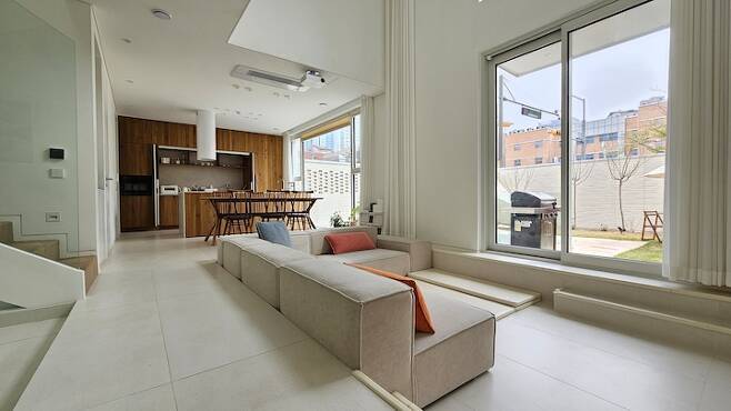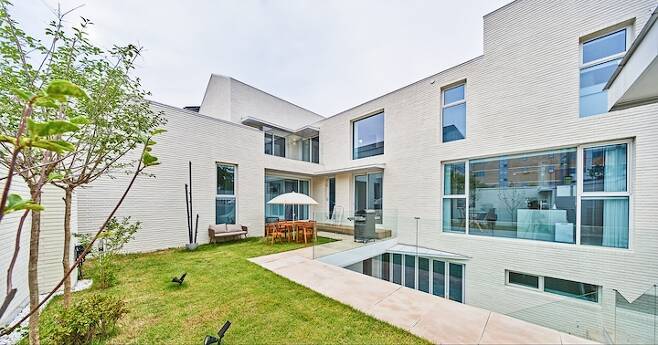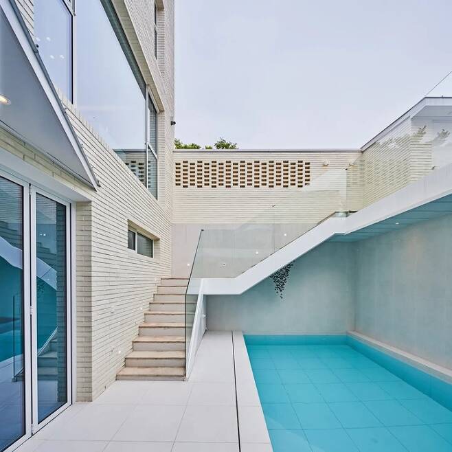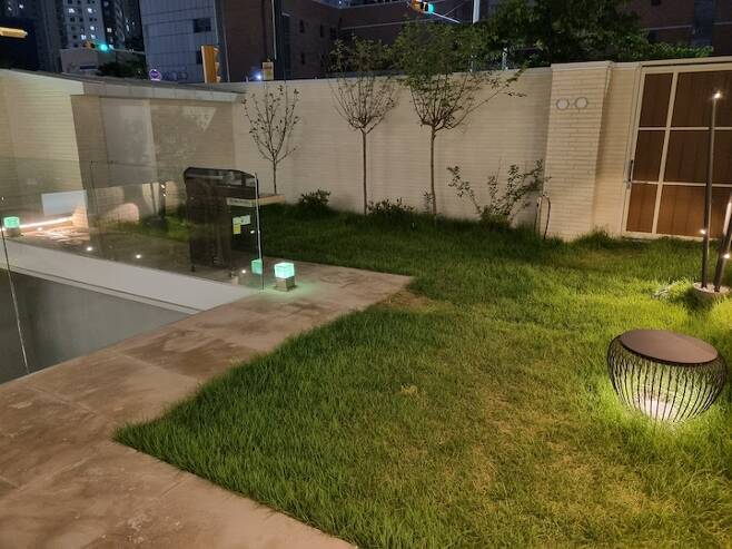 지하에 썬큰 수영장을 만들다보니 정원은 상대적으로 작아지긴 했지만 아기가 뛰어다니며 놀기엔 충분한 것 같아요.