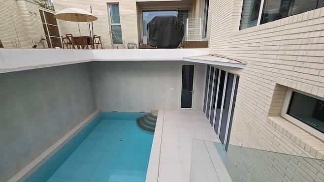 저희 집의 가장 큰 자랑은 뭐니 뭐니 해도 지하에 있는 썬큰 수영장입니다.