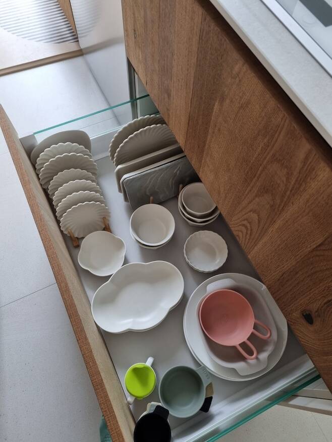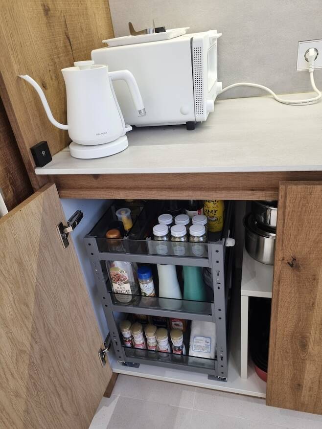 살림살이가 밖에 많이 나와있으면 정리된 느낌이 덜해서 문 속에 꼭꼭 숨겨놨어요.